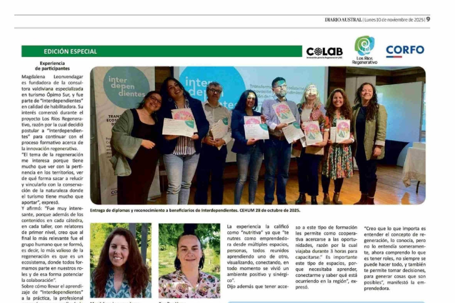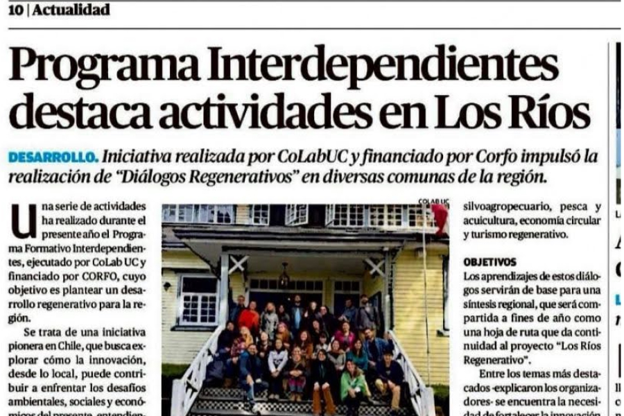 Las notas de prensa destacaron la realización de los Diálogos Regenerativos Territoriales en distintas comunas de la Región de Los Ríos, visibilizando la dimensión territorial del programa.